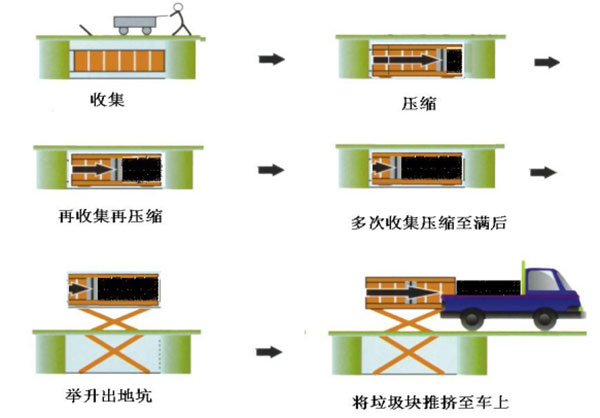 垃圾儲存、壓縮及寄存全部在地面以下,地面上沒有垃圾散落,對環(huán)境影響較小;垃圾壓縮后密度高,水份少,可避免汽車運輸中的垃圾散落、污水滴漏現(xiàn)象,避免二次污染;